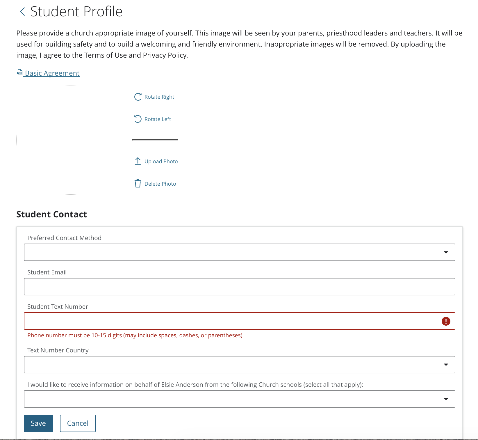 3. This will take you to Student Contact Information. Here, you can add or update an email address.